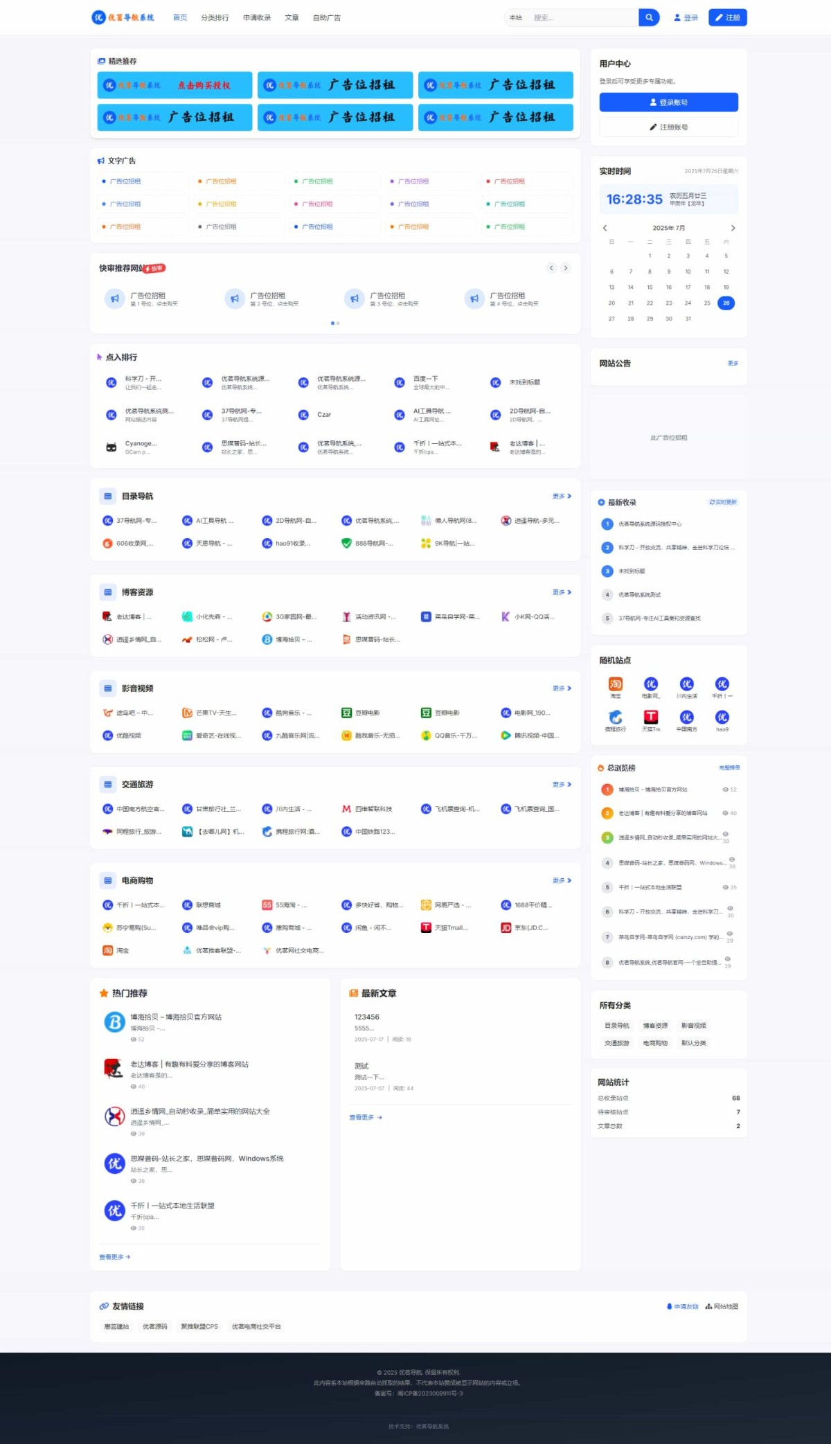 功能如下:自助广告系统,清爽蓝色 UI,点入自动收录,自动排行。等一些列功能自己测试吧。